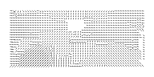 right quadrant shows the optical flow "needle" plot calculated from a